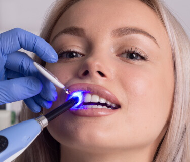 Beim Bleaching mit BEYOND wird eine Kaltlichtlampe verwendet, welche die Zähne ohne UV aufhellt, daher kommt es auch zu keinen Empfindlichkeiten, keiner unangenehmen Hitze, keinen Rötungen im Gesicht und zu wenig bis keinen Schmerzen.
